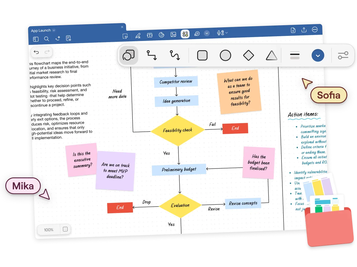 Arbeite in Echtzeit mit anderen auf jedem Gerät zusammen. Teile Notizen, hole Feedback ein und entwickelt Ideen gemeinsam weiter – mit intuitiven, für moderne Workflows entwickelten Funktionen.