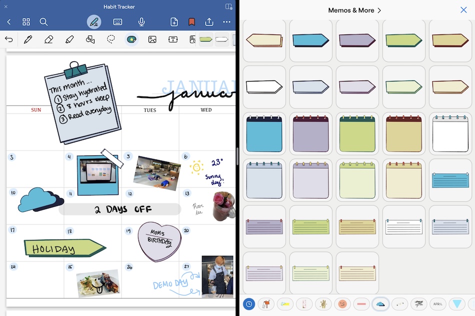 디지털 문구 아이템으로 더 디지털하게! Memos & More 컬렉션은 스티커 노트, 탭, 메모, 목록, 달력 등 좋아하는 문구 아이템을 가장 귀여운 디지털 스티커로 새롭게 탄생시킨 컬렉션입니다.