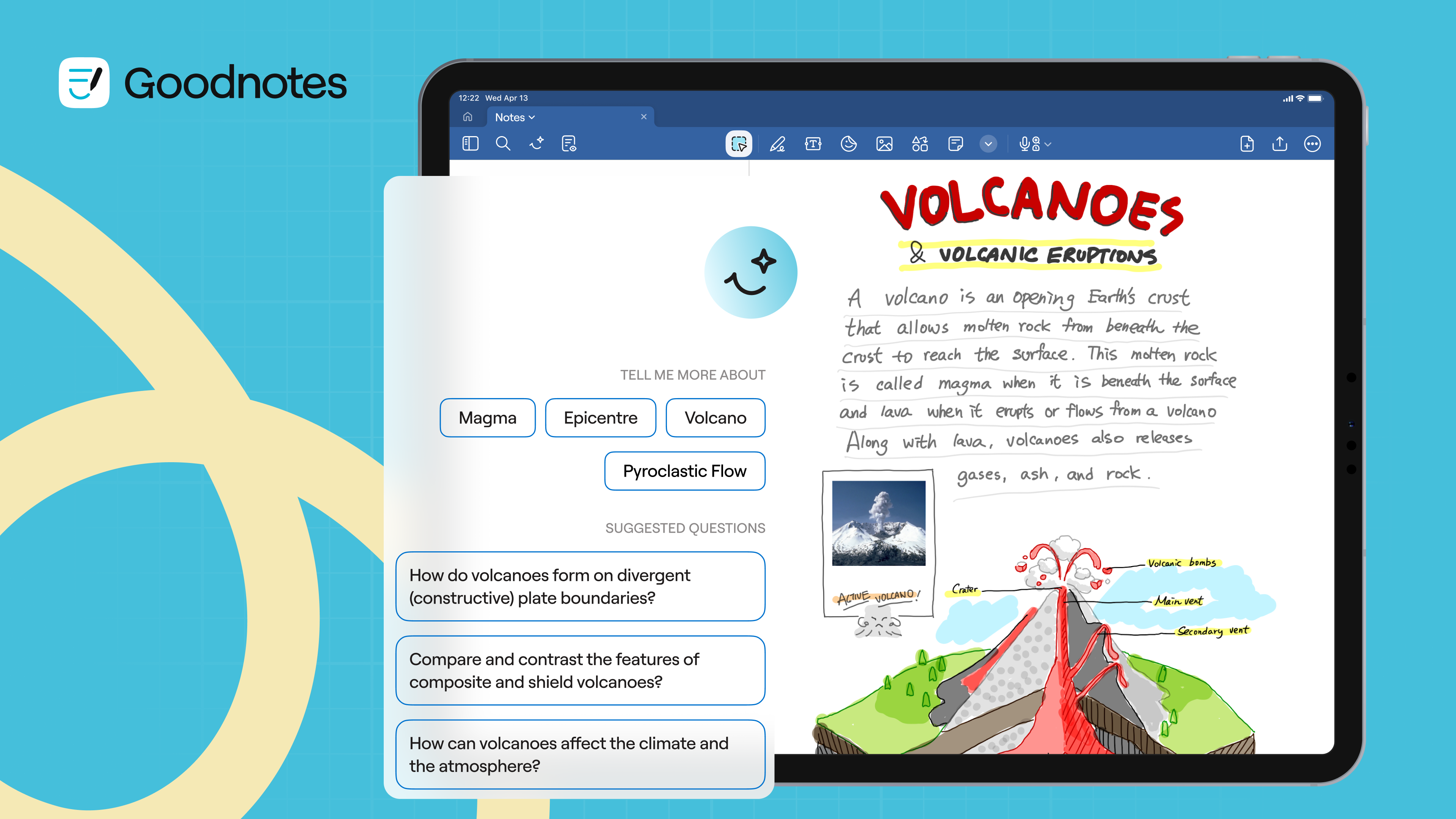 With Goodnotes AI, users gain access to a context-aware thought partner that supports every stage of their creative process—enabling them to bring ideas to life more quickly and powerfully, all within the Goodnotes app. Examples include: