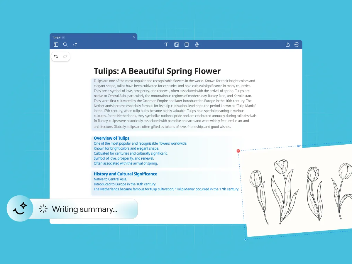 无论你的信息来自手写文字、打字文本、图片,还是音频录音,Goodnotes AI 都可化身为你的得力助手,帮你捕捉灵感、打磨思路,自信地释放创意。